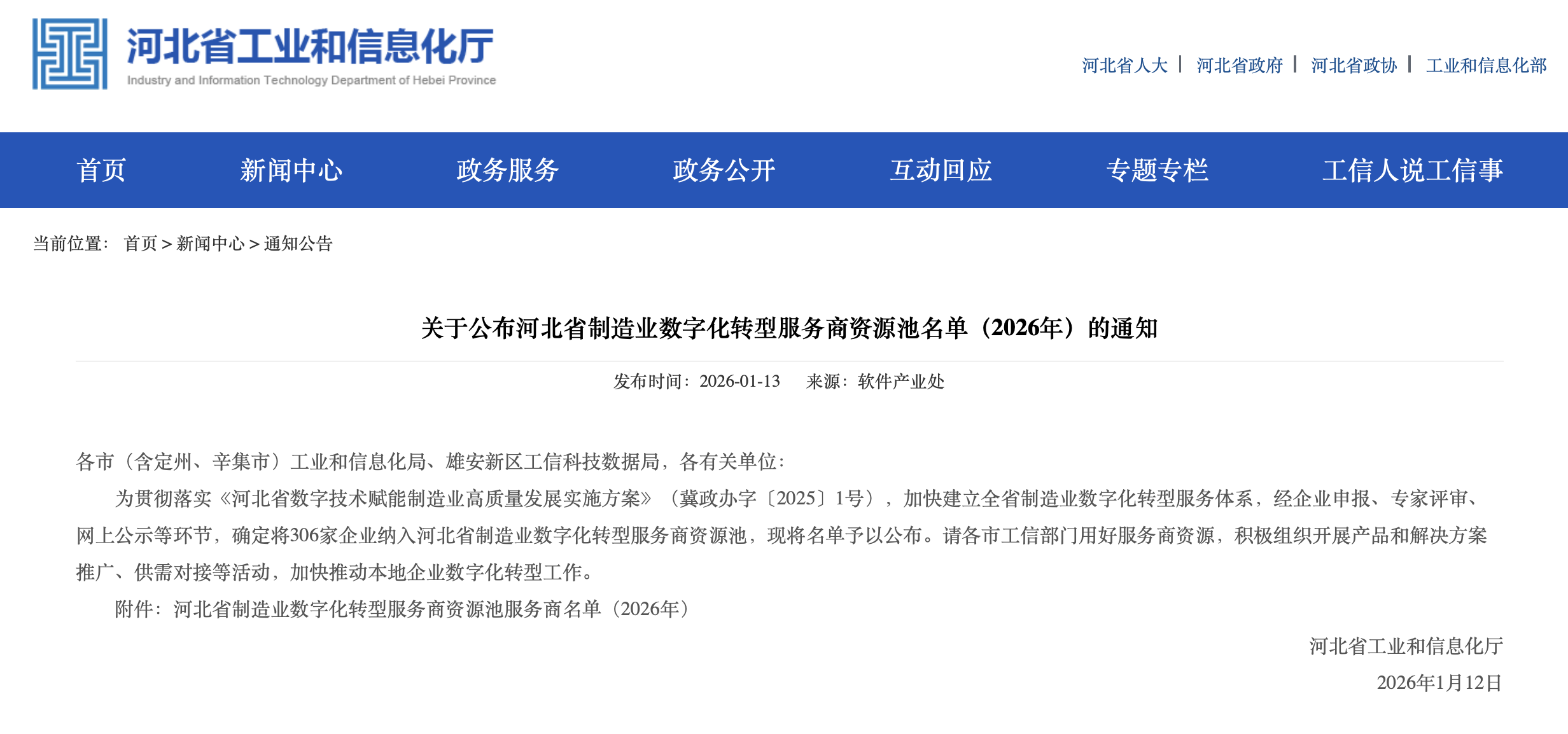近日,河北省工业和信息化厅公示了省级制造业数字化转型服务商资源池,山东蓝海领航大数据发展有限公司成功入选河北省云服务商。