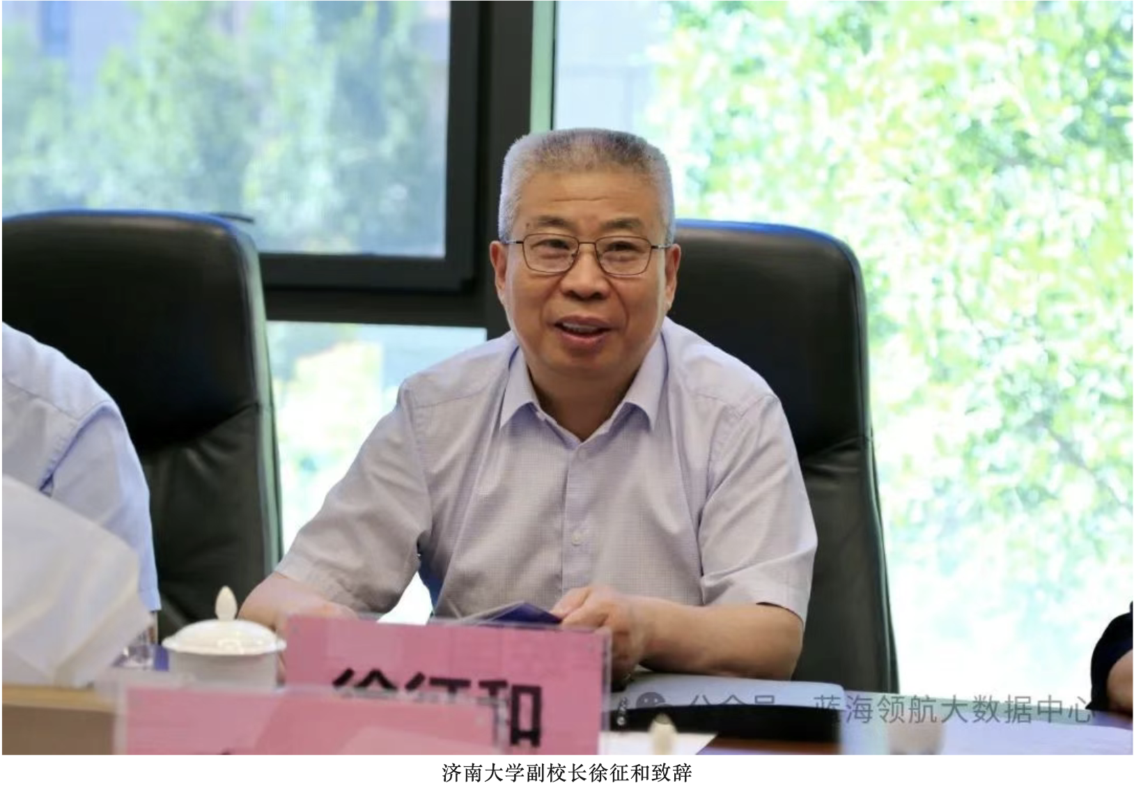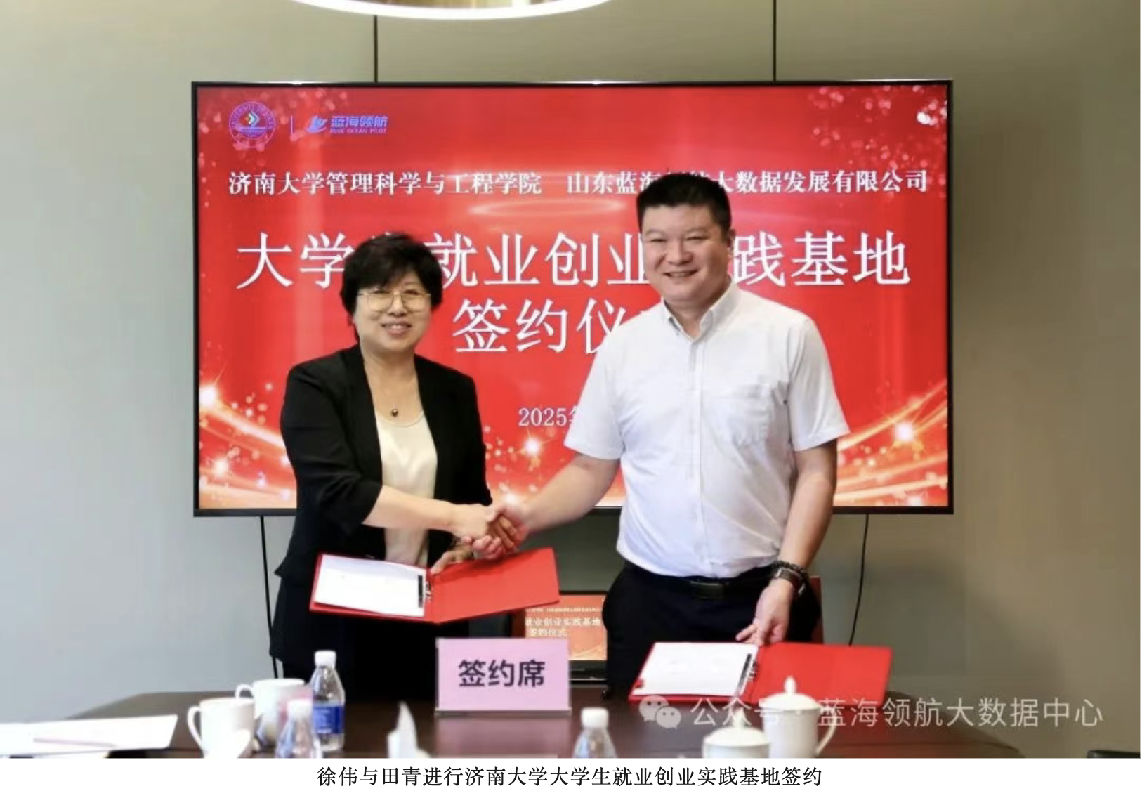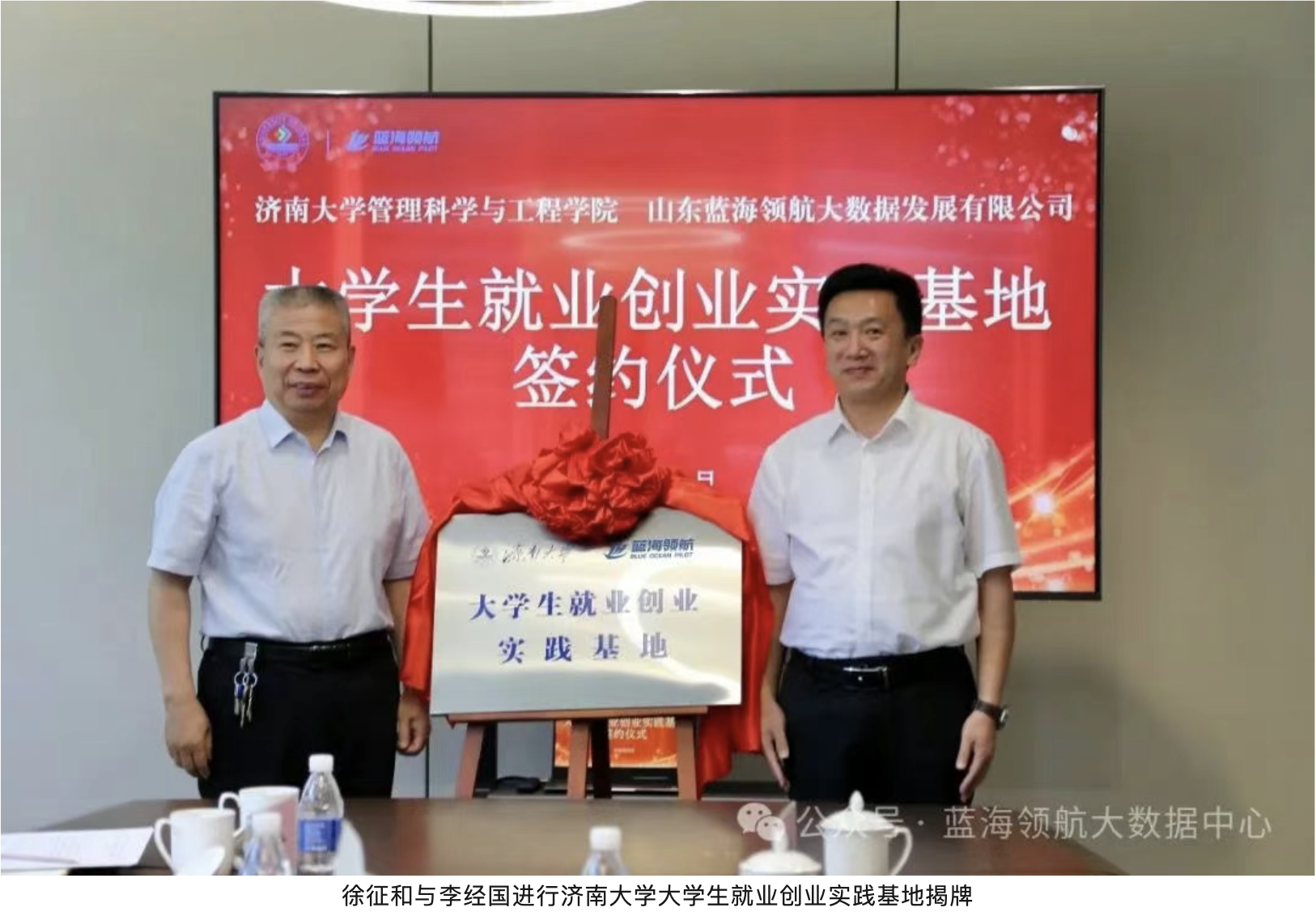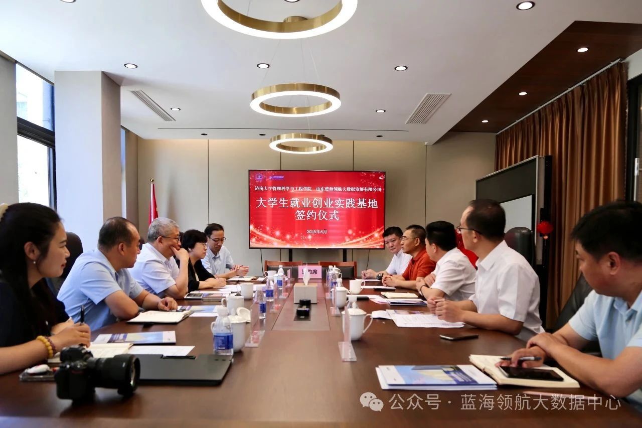 6月3日,济南大学管理科学与工程学院与山东蓝海领航大数据发展有限公司“大学生就业创业实践基地”签约授牌仪式在蓝海领航隆重举行。济南大学副校长徐征和,管理科学与工程学院院长徐伟,学生工作部(处)副部(处)长董俊杰,管理科学与工程学院党委副书记、副院长郭华,相关工作人员,章丘区副区长李经国,圣井街道党工委书记李子奇,相关领导干部,山东蓝海领航大数据发展有限公司董事长董新建、总经理田青出席本次活动。